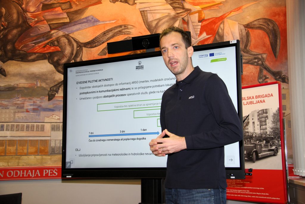 Produkt projekta so tri pilotne rešitve, ki jih je na dogodku na Gasilski brigadi Ljubljana predstavil Andrej Golob, vodja Sektorja za meteorološke, hidrološke in oceanografske napovedi na Agencije za okolje: