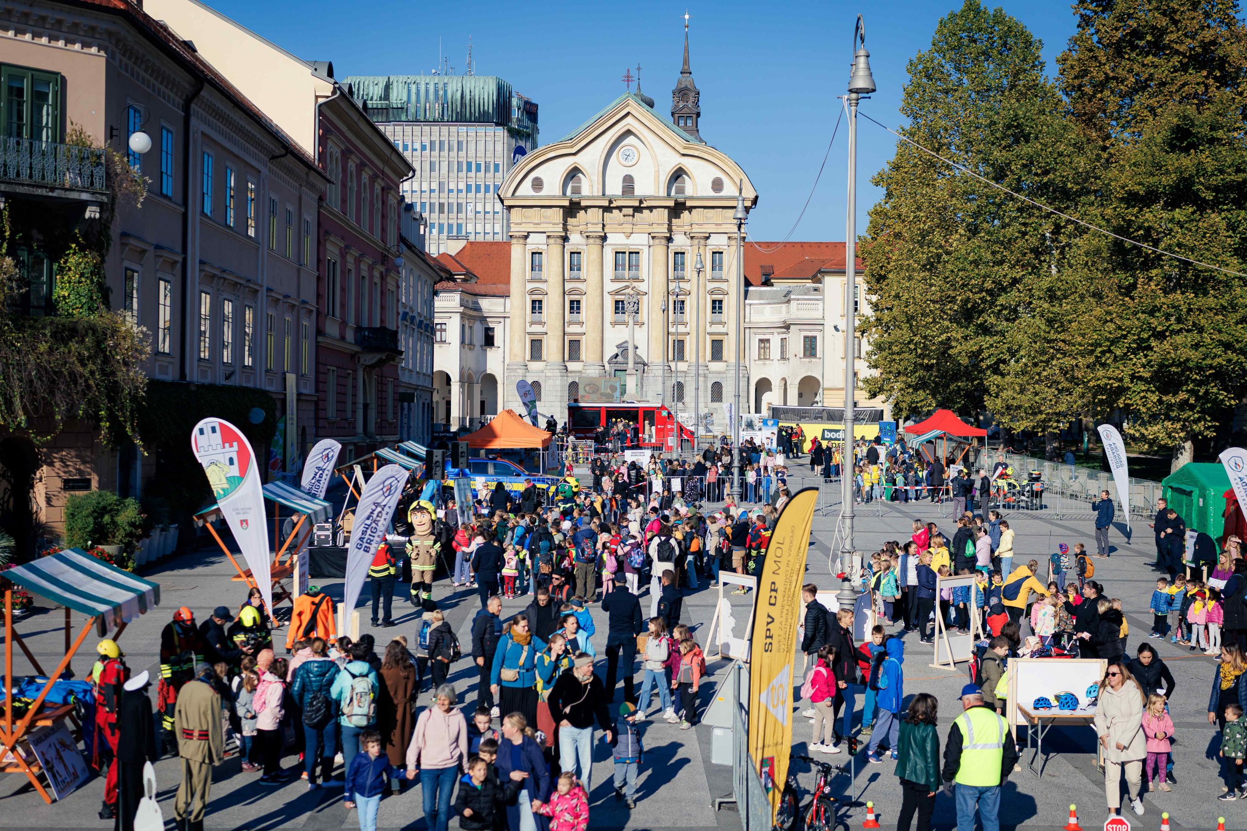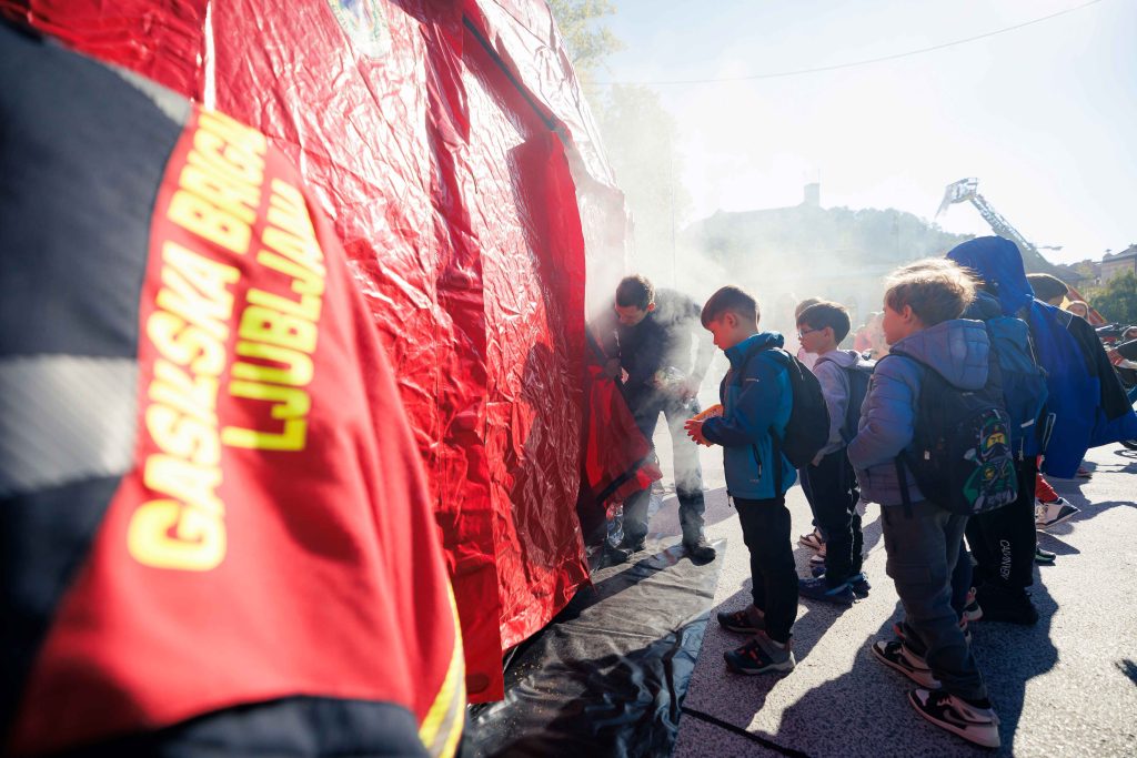 V petek, 3. oktobra 2025, je Kongresni trg v Ljubljani znova živel v znamenju dogodka Dan z gasilci, ki ga je Gasilska brigada Ljubljana pripravila že tretje leto zapored. Dogodek je letos privabil več kot 2.100 otrok iz ljubljanskih osnovnih šol in vrtcev, ki so skozi igro, delavnice in prikaze spoznavali pomen varnosti in preventivnega ravnanja.