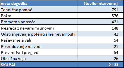 Iz podatkov izhaja, da je bilo posredovanj, ki so bila posledica naravnih nesreč, številčno manj. Hkrati pa žal beležimo porast posredovanj ob požarih in prometnih nesrečah.